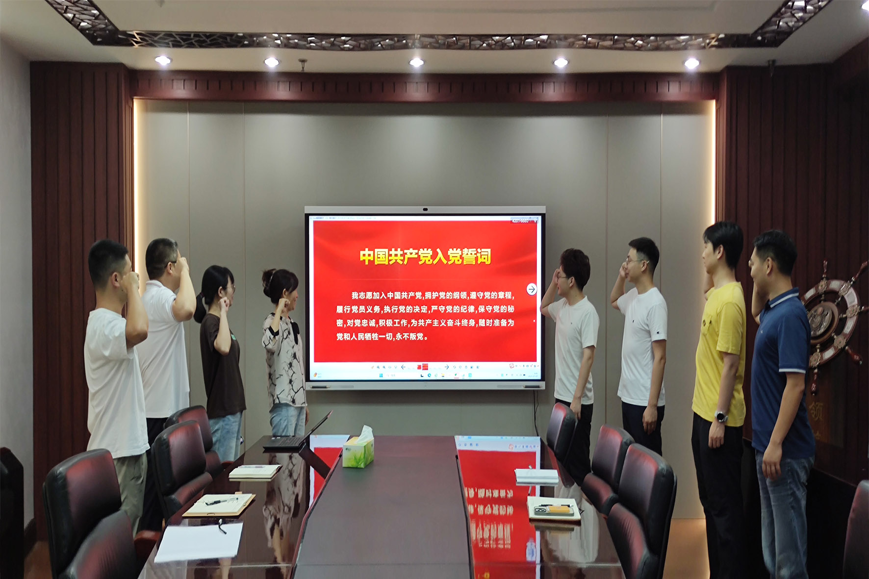 7月1日,为深入贯彻中央八项规定精神,在中国共产党成立104周年之际,省协会党支部组织开展“重温入党誓词,牢记初心使命”主题党日活动,全体党员参加活动。